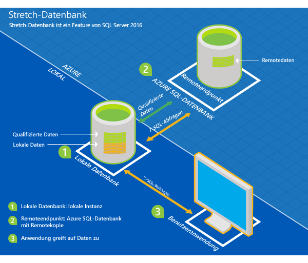 Die SQL Server Stretch-Datenbank ermöglicht es vollkommen transparent, cold und warm data nach Azure auszulagern. Transparent bedeutet hierbei, ohne notwendige Anpassungen der Applikationslogik oder von Abfragen oder Views.